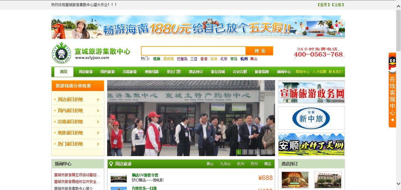 宣城旅游集散中心:安徽宣城地区规模最大旅行社:在旅游电子商务快速发展的时代,客户紧跟时代潮流、用于创新开拓的新的市场,委托旅行者定制化开发了符合市场需要、功能完善的旅游电子商务网站。